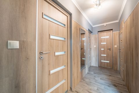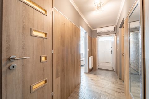 A házba lépve a praktikus előtérbe érünk, ami kényelmes tárolást biztosít cipők, kabátok, táskák tárolására.