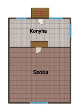 egy szoba és egy konyha áll rendelkezésre, komfort nélküli kivitelben. A fűtésről fatüzelésű kályha gondoskodik, a vízellátás ásott kútról megoldott. Fürdőszoba és WC nem került kialakításra, a szennyvíz elvezetése emésztővel történik.