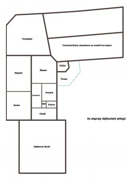 Az épület jelenlegi elrendezését tekintve egy lakásból, egy vendégtérből, egy cukrászműhelyből és egy beépíthető tetőtérből áll.